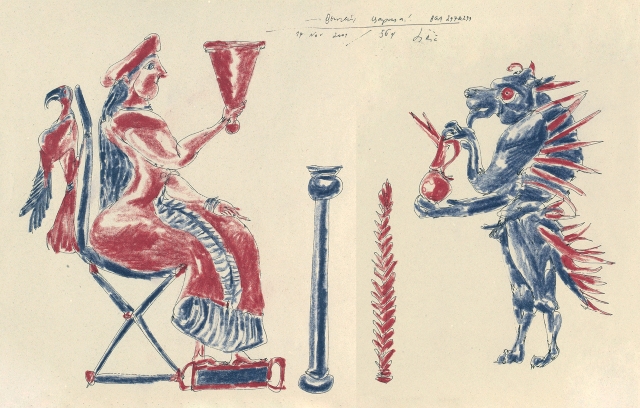 Интересно, "древние каменные печати минойцев с символическими, часто загадочными изображениями" точно воспроизведены художником? Или они послужили вдохновением, а результат - фантазия Александра Джикия на минойскую тему? Там есть какие-то подписи на русском языке?