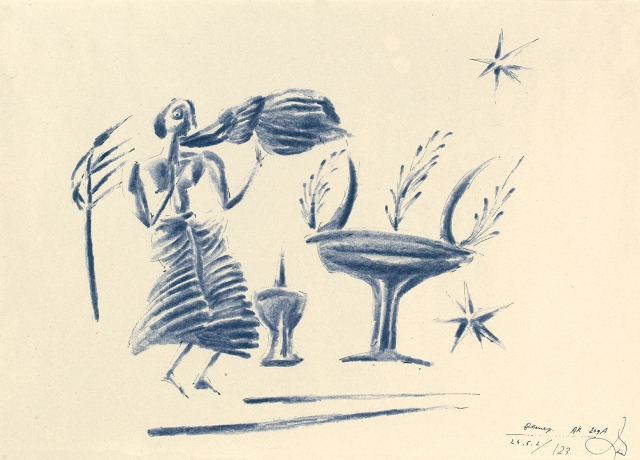 Вот и выставка, открывшаяся в Москве, имеет в основе своей археологический материал. Если точно — древние каменные печати минойцев с символическими, часто загадочными изображениями. Печати были совершенно миниатюрные, но на основе их изучения художник Александр Джикия создал целую серию станковой графики. Сначала она была показана в Археологическом музее в Греции, а теперь вот добралась до Москвы.